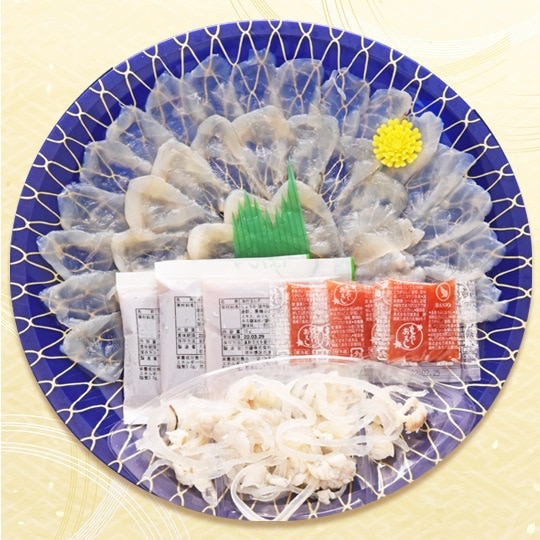 | ふぐ刺身の美味しい食べ方 | 解凍後そのままぽん酢でお召し上がりください。 もみじおろしやネギ等お好みの薬味を入れてお楽しみください。 | |