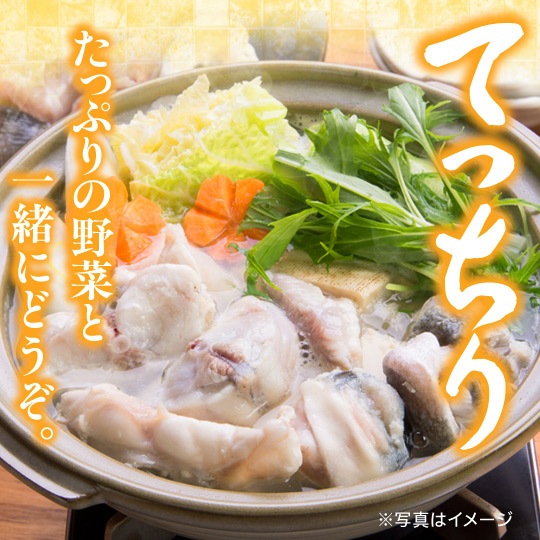 | ふぐ鍋の美味しい食べ方 | 解凍後、鍋だしが沸騰しましたら、ふぐを召し上がられる分だけ 入れて頂きもう一度沸騰しましたら出来上がっておりますので、ポン酢でお召し上がりください。野菜・豆腐・くずきりを入れられると、ふぐのダシがよく染み美味しく召し上がって頂けます。野菜は、ふぐが煮立ってから少しずつ召し上がる分だけ入れて下さい。刻みネギ・もみじおろし等の薬味をつけられるとより一層味に深みが出ます。 | |
