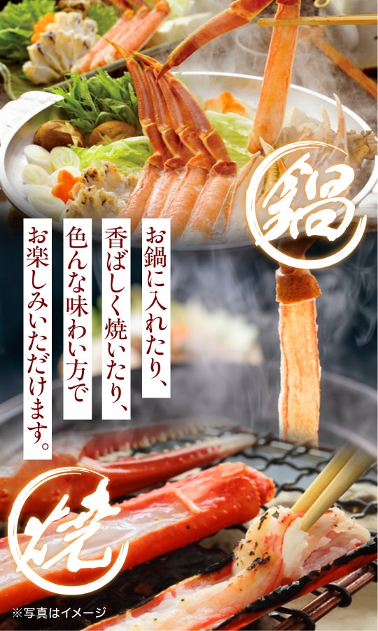 | 美味しい食べ方 | 解凍後、必ず加熱してお召し上がり下さい。 かに鍋やかに雑炊、 焼きがには、まさに絶品です。 むき身のタイプですと、天ぷらもおすすめです。 |